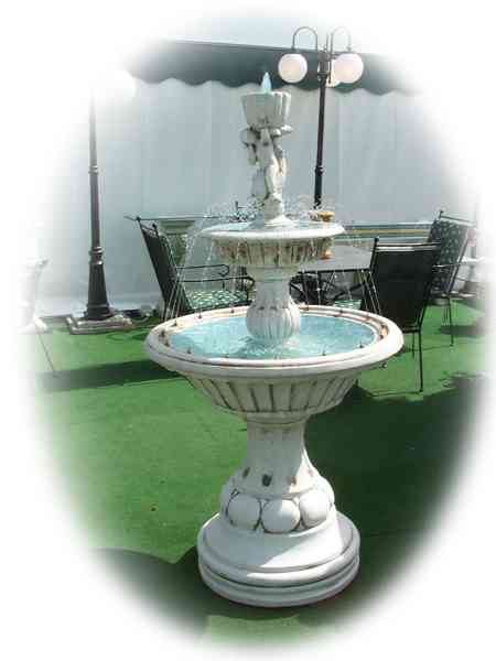 SPLENDIDA FONTANA IN GRANULATO DI MARMO E CEMENTO BIANCO AD ALTA RESISTENZA.